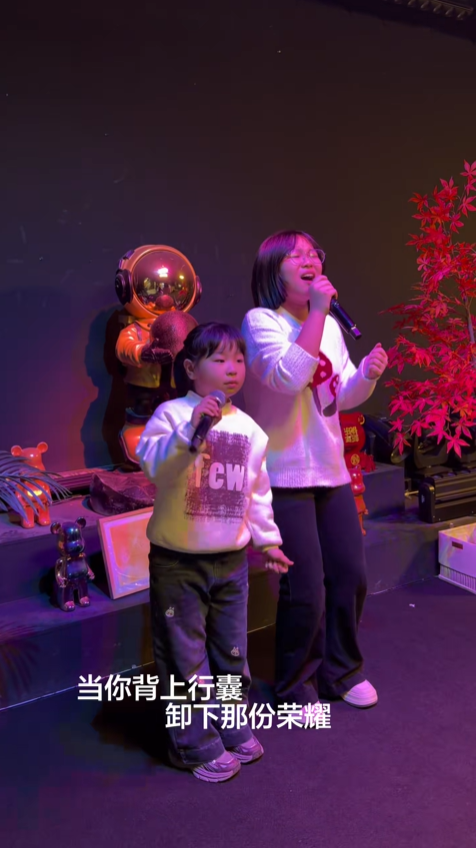 翻唱《忘了你忘了我》時,這首歌的高音部分難度不小,我嘗試了很多次都難以達到理想效果。看著我有些沮喪,妹妹笑著拍拍我的肩膀:“姐姐別怕,高音交給我,我們一起把這首歌唱好。” 于是,就有了視頻里 “高音不夠,妹妹來湊” 的有趣畫面。我穩穩唱好主歌,用溫柔的中音鋪陳情感,當歌曲推向高潮,妹妹清亮的高音驟然響起,完美承接住旋律,讓整首歌的情感瞬間拉滿。沒有聲卡修飾,沒有后期加工,最純粹的清唱,反而更能展現我們最真實的唱功,也藏著最真摯的熱愛。
