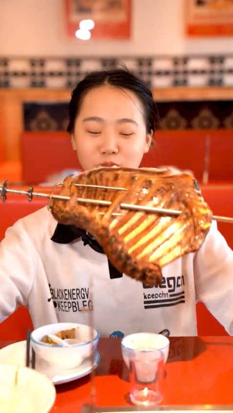 服務員瞬間愣住,嘴巴微張,眼神里寫滿了不可思議,半天沒說出話。我們也徹底驚呆了,低頭看向她的餐盤,原本滿滿一盤烤羊排,此刻干干凈凈,連一點骨頭渣都不剩,仿佛剛才那盤誘人的羊排,從來沒有出現過。