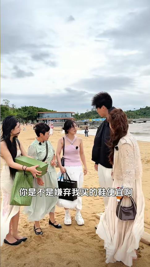小海哥,這好不容易來趟海邊,咱們倆拍個這個,我看網上好火,小海哥我幫你倆拍。小海哥再往走點,拍著海浪才好看,別往里走了危險,小心點。你倆,快回來,鞋濕了快回來。太危險了快回來,沒事沒事,佳怡你看我拍得咋樣?好不好看,都賴你。讓小海往里走,鞋都濕了。佳怡不要拍這種照片嗎?我不尋思咋出片好看么?咱們先到岸邊,一會浪又上來了。楊楊姐你們先上去休息,我想去上個廁所。行行行你去吧,一會讓車里看看還有沒別的鞋。給你包,都賴你。你不上火了,算我的我剛才路過商場,尋思給小海買新的去。沒事隨心不用了很快就干了。沒事我很快就回來了。老板你這里有沒有舒服一點的男鞋,幫我推薦一下。這一款我們就很舒服。這一款是吧?那就拿這個了,幫我拿一雙 43 碼的,多少錢呀?199。謝謝楊楊姐,鞋咋還整濕了呢?小海來給你從車里拿的熱水,不用了你喝吧。小海哥你快穿上,小海哥不用了隨心,我的鞋等會就干了,你就別推辭了。小矮哥,你幫我看清阿龍的為人,上一次又在早市幫我解圍。我挺感謝你的,你快收下。這是小事隨心,小海你看隨心這么誠心,你再拒絕就不禮貌了。來來快收下,收下吧。難得隨心有這方面誠意,行謝謝你,隨心。沒事沒事,快穿上快穿上,鞋還挺適合小海。楊楊姐讓你們久等了,咋那么久?我順路給小海哥買了雙鞋,小海哥你快試試,不用了佳怡,隨心都買完了。你這個退了吧。