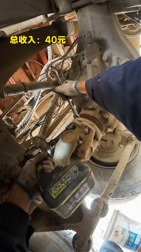又有客戶過來,說:“傳動軸前面換一個伸縮叉,就給我換一個花鍵。” 我檢查了一下,發現花鍵不行了,十字軸也壞了,讓客戶站遠點,跟他說 “換花鍵八十塊錢,用大錘的話 160 塊錢,一點油都不打”。客戶問黃油在哪加,我給他上了黃油,跟粉絲開玩笑 “粉絲先吃”,心里覺得巴適巴適,最后收了八十塊錢。