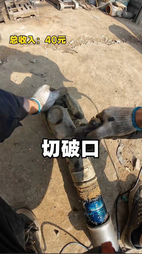 我先切破口,這鋼圈裂了,還調侃了一句簡稱 “1916 王超”,這煙看著有點嗆人,跟粉絲開玩笑說讓粉絲舔一口。打磨平整后,收了 30 塊錢。又來活了,傳動軸裂了,我心里暗忖 “巴適巴適”,還是先切破口,用巴鐵工藝來修,再跟粉絲調侃一句 “粉絲舔一口”,很快就修好了。