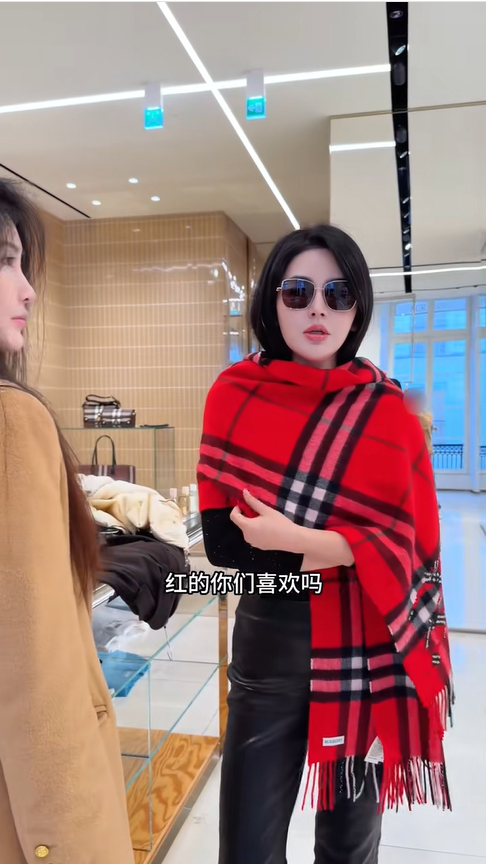 眼鏡也拿上,這款式感覺二姨拍照的時候戴挺合適,配著絲巾絕了。這些太陽鏡和圍巾都是從巴黎帶給你們的,from Paris 喲~ 葉子穿這件時髦不?巴黎限定款,紅色的也挺好看,你們喜歡嗎?喜歡的話紅色也給你們拿上,誰本命年的話正好能用。記得二十八號來給葉子過生日呀~ 我問店員有沒有 Burberry 的秀款西裝套裝,先試了件西裝,怎么感覺拽都拽不起來,不好看,又換了一件,這件好看,奶奶的風格。讓葉子披一下試試,再戴上小墨鏡,有一種小孩穿大人衣服的感覺,還挺可愛。數了數,已經選了三條圍巾、兩個太陽鏡,讓小超把箱子拿過來裝上。這兒的外國人都好高,真有人腿這么長呀~ 又發現了些好看的,越買越多了,結賬的時候我還在不停找新東西,又多拿了兩樣,真的太好看了,必須拿下!店員說這個是 100% 防水的,還一個勁說 nice、good,完美~ 我催店員快點,跟他說我都沒錢了,i don't have money~ 有沒有千頌伊那味兒了?不過沒買,店員說了五遍 i'm coming back,不能在這兒待著了,再待錢包就空了,趕緊換個店。臨走店員還送了個搞笑的筆記本,正好我需要,跟人家說了好幾遍 thank you,然后就趕緊走啦,還特意把包放背面,怕被搶。要是喜歡用手機到處拍的,還是在家買吧,出來得給粉絲反饋,那邊還有挺好看的,不過先不逛了。