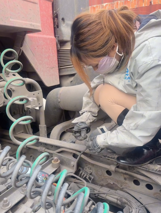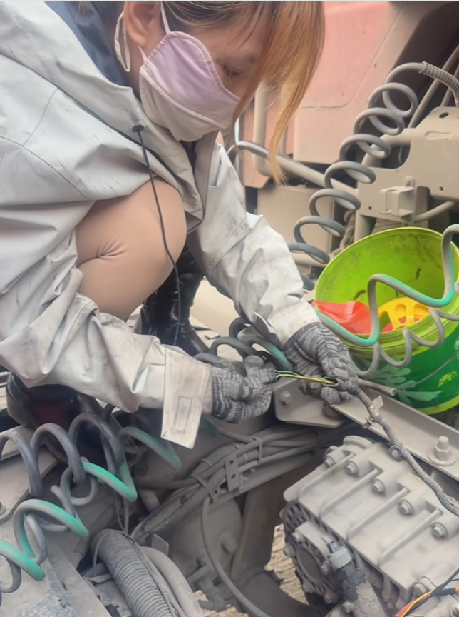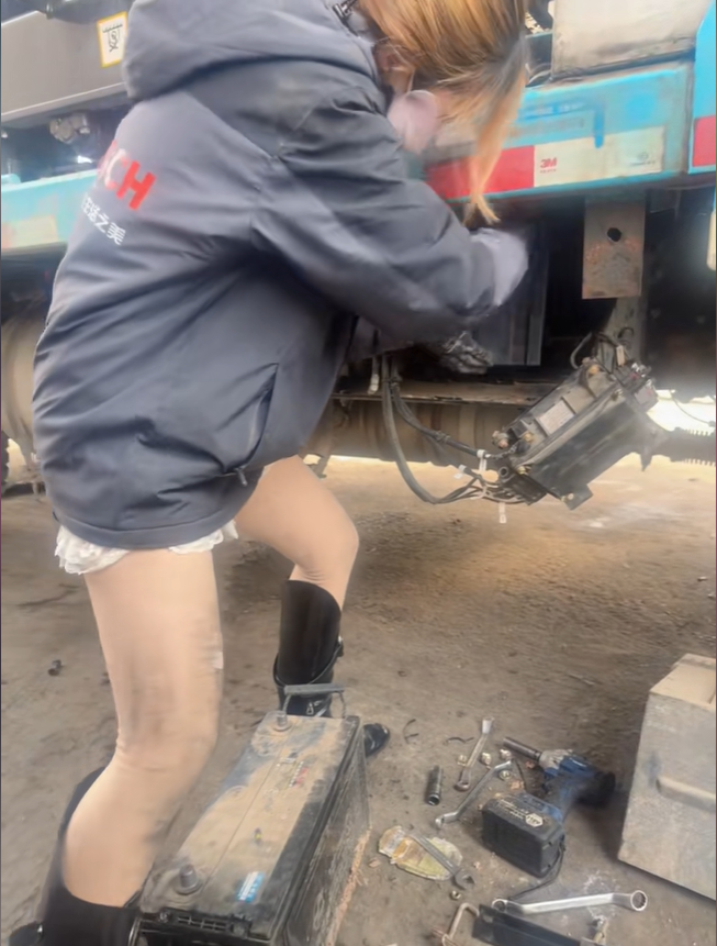 修車的路上,我見過凌晨五點的朝陽,也熬過深夜的星光;手上的傷口結了又破,筒靴換了一雙又一雙,黑絲的款式更新了一次又一次,但我對這份職業的熱愛始終未變。有人說我 “不務正業”,有人說我 “標新立異”,但我知道,真正的熱愛從不需要向別人解釋。我喜歡扳手轉動時的清脆聲響,喜歡看著故障車輛重獲新生,更喜歡在滿是油污的車間里,保持著自己的精致與熱愛。