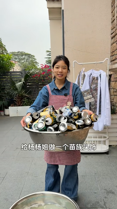 說著,她起身跑進房間,抱出一個精致的布包,小心翼翼地打開,里面是一套苗族服飾 —— 正紅色的裙擺繡著繁復的鳳凰花紋,袖口綴著細碎的藍白蠟染,領口還縫著一圈小巧的銀飾碎片,陽光下泛著柔和的光。“楊姐,你還記得去年在苗寨拍寫真嗎?我回貴州老家的時候,特意給你帶了這套衣服。” 佳怡的聲音帶著幾分雀躍,“不過光有衣服可不夠,苗族頭飾才是靈魂,我打算用這些易拉罐,給你做一個獨一無二的頭飾,到時候咱們再去拍一組苗疆少女寫真,復刻當時的快樂!”