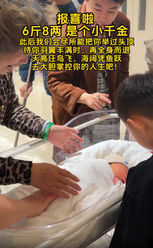 6斤8兩的你,是上天賜予我們最珍貴的禮物,這個小小的小千金,一出生就攥緊了小拳頭,仿佛帶著對這個世界的好奇與期待。看著你粉嫩的小臉,聽著你清脆的啼哭,心里的幸福感滿得快要溢出來,那一刻才真正明白,什么是血脈相連,什么是滿心歡喜。往后的日子,你就是家里的小寶貝,是我們捧在手心的小公主,是照亮我們生活的小太陽。