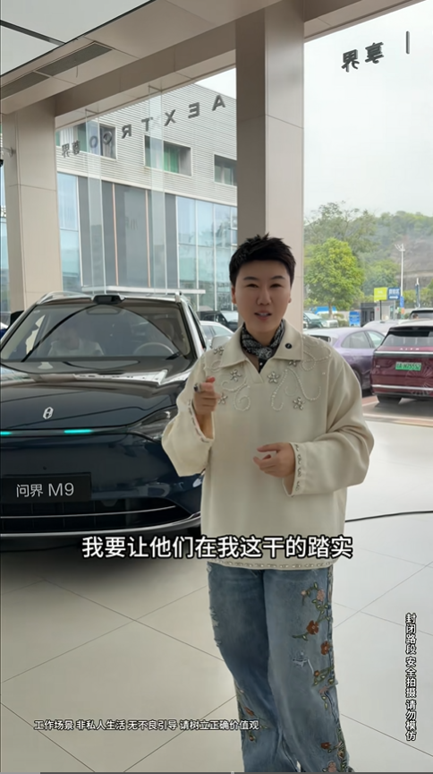 車行里,我們一起看車,有人說起一款車的后排空間小,店員連忙介紹另一款問界M9,說這車空間大,小張快一米九的大個都能在后排躺下,還像私人電影院一般,車里甚至還帶冰箱,種種配置都格外貼心。我看小張看著這款車時,眼里藏不住的喜歡,便悄悄記在了心里。
