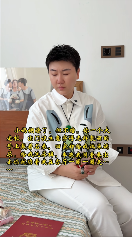 按下播放鍵,后媽的聲音緩緩傳來,我的眼淚瞬間止不住地落下。錄音里,她細數著我對她的好:我在外談生意光鮮亮麗,回家卻耐心為她端屎端尿、清洗尿褲;她半夜鬧著要出門,我便默默陪著她在客廳一圈圈踱步;她不小心尿床,我從沒有半句責備,只會先摸她身上涼不涼,把褲子用吹風機吹熱再給她穿上。她說我待她太好,好到讓她害怕,害怕自己的病情越來越重,會成為我的拖累,害怕這份情分太重,她承受不起,所以她選擇悄悄離開,回到東北。