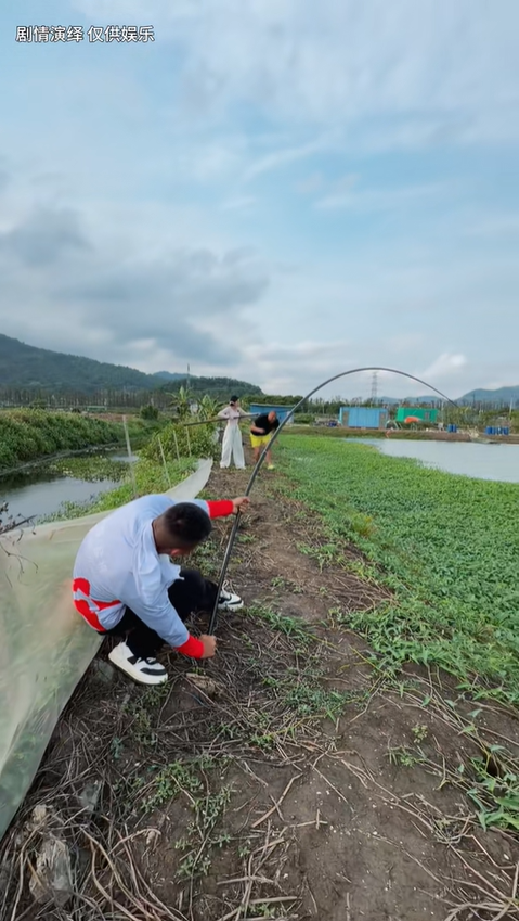 休整片刻,我們從車里取出更強悍的猛將鋼刀九星典藏版魚竿,換上更粗的線組,重新投入戰斗。既然明釣難以制服,我們決定改變戰術 —— 掏草洞。大師姐擅長清理水草,手腳麻利地撥開雜草,開出精準釣點;阿鞭快速綁好更大號的魚鉤,做好萬全準備。我們把整桶餌料打入窩中,靜靜守候,可天色漸暗,那怪物似乎被驚到,遲遲沒有動靜。